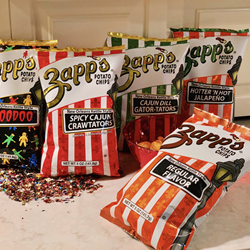 Founded in 1985 by Ron Zappe, Zapp’s® New Orleans Kettle Style Potato Chips include a range of convenient on-the-go and take-home sizes as well as exciting flavors including Cajun Dill Gator-Tators®, Spicy Cajun Crawtators®, Hotter N Hot® Jalapeno, Mesquite Bar-B-Que and a whole lot more – Yeah, they’ll tickle your taste-buds and keep’m dancing like you’re at Mardis Gras!