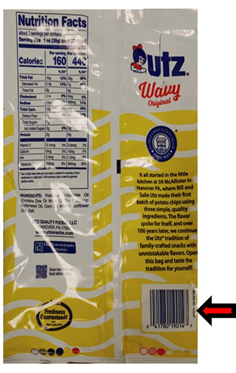 Utz Quality Foods, LLC., is issuing a voluntary recall for 88 cases of Utz® 2.75 oz. Wavy Original Potato Chips due to an undeclared milk allergen. This recall was initiated after Utz learned that approximately 1200 single-serve bags contained Utz® Wavy Original Potato Chips flavored with seasoning instead of plain Utz® Wavy Original Potato Chips. People who have an allergy or severe sensitivity to milk may run the risk of an allergic reaction if they consume these products.
